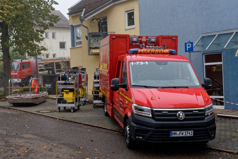 Gleichzeitig nahm die Feuerwehr Untereisesheim einen Innenangriff auf der Ladenfläche im Erdgeschoss vor, wo mittels diverser Einrichtungsgegenstände eine Art „Parcours“ vorgefunden wurde. Auch hier wurden zwei verletzte Personen gefunden und gerettet. Des Weiteren geriet ein Trafohäuschen neben dem eigentlichen Übungsobjekt „in Brand“ und musste zusätzlich gelöscht werden.